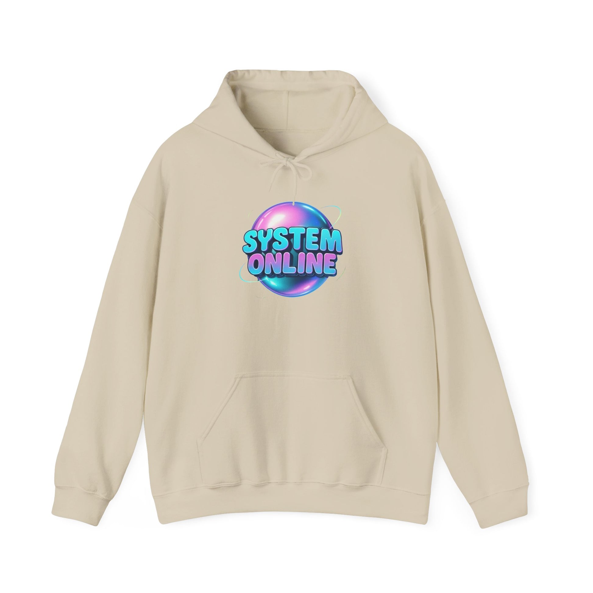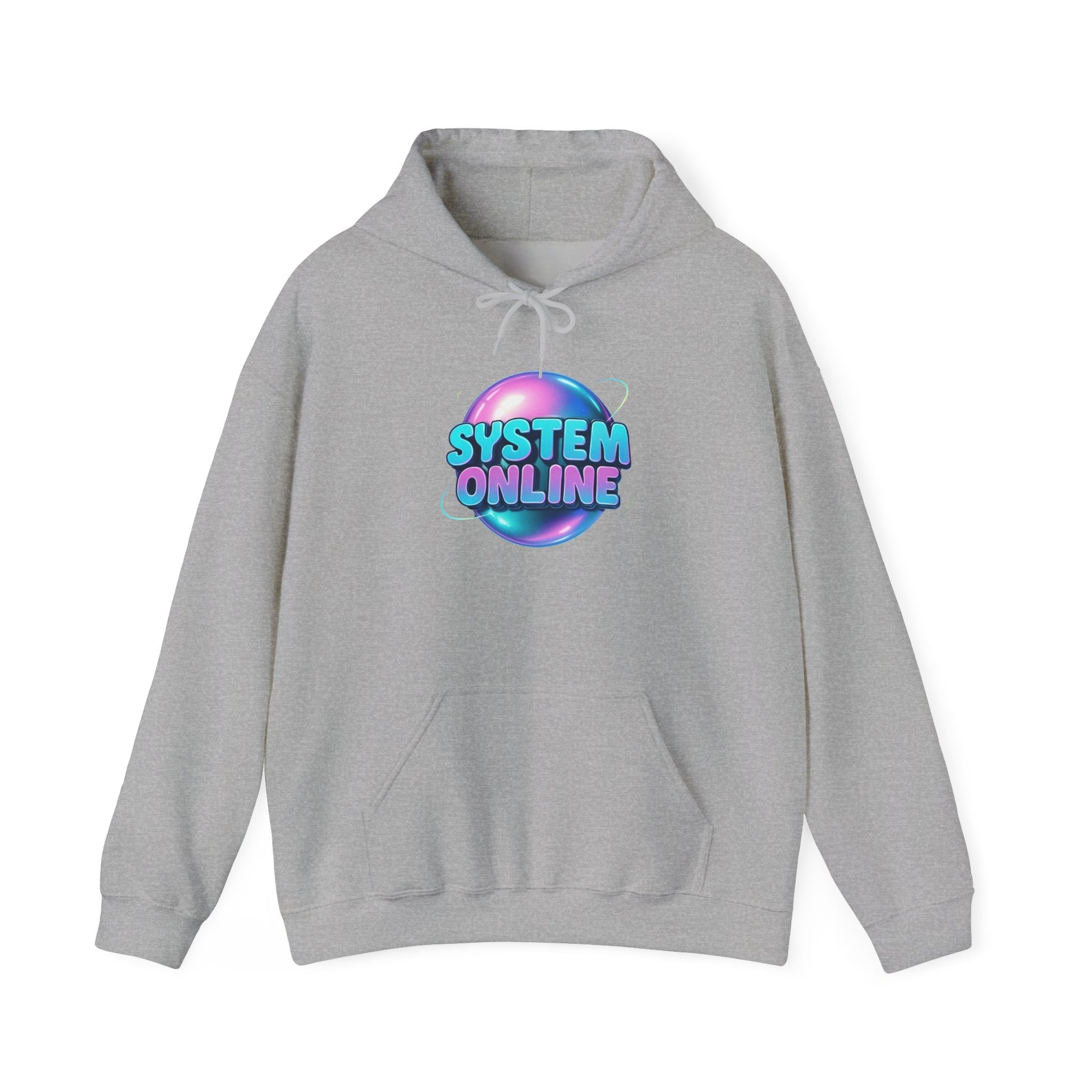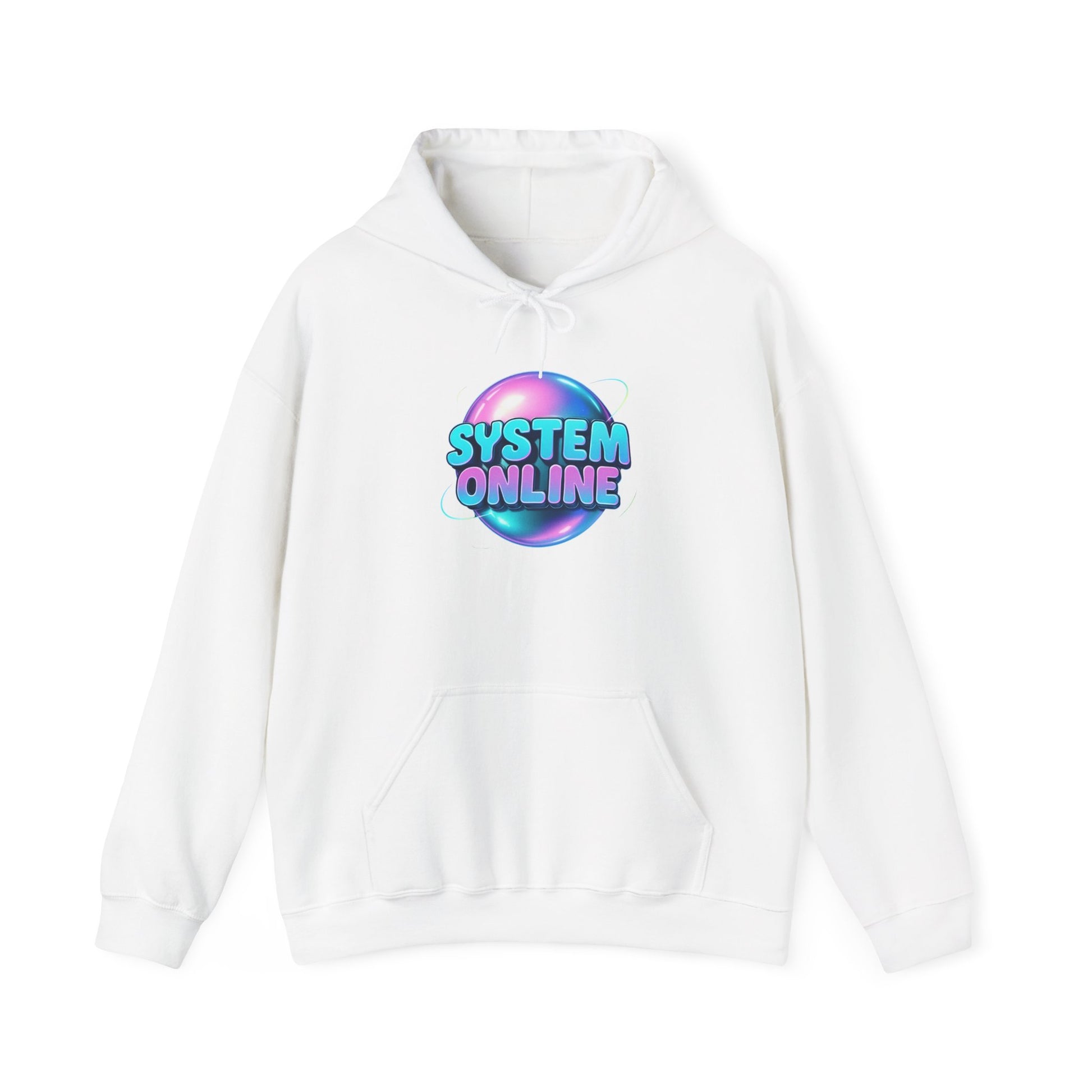 System Online Hoodie — Retro Neon Sphere Graphic Sweatshirt